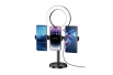 Поворот на 360 градусов, возможность подъема, трехцветная подсветка, 10-уровневая регулировка яркости; подходит для различных моделей смартфонов