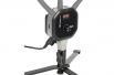 Адаптер с подпружиненной лапкой рассчитан на смартфоны шириной от 56 до 86 мм. Адаптер крепится к съемной штанге с винтами 1/4”. Эту штангу, так же как штанги светодиодных панелей, можно изгибать под нужным углом. При необходимости на нее можно установить другое устройство с отверстием под винт 1/4”, например штативную головку, микрофон или дополнительный осветитель.
