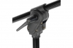 Тренога стойки обладает широкой площадью опоры — 120 см, обеспечивая высокую устойчивость конструкции. Растяжка треноги оснащена нижним винтовым креплением, которое позволяет фиксировать колонну в заданном положении на разной высоте. Например, если опустить колонну в пол, то образуется четвертая точка опоры, что может значительно повысить надежность установки оборудования. Ножка стойки оснащена клипсой для удобного и безопасного крепления кабеля.